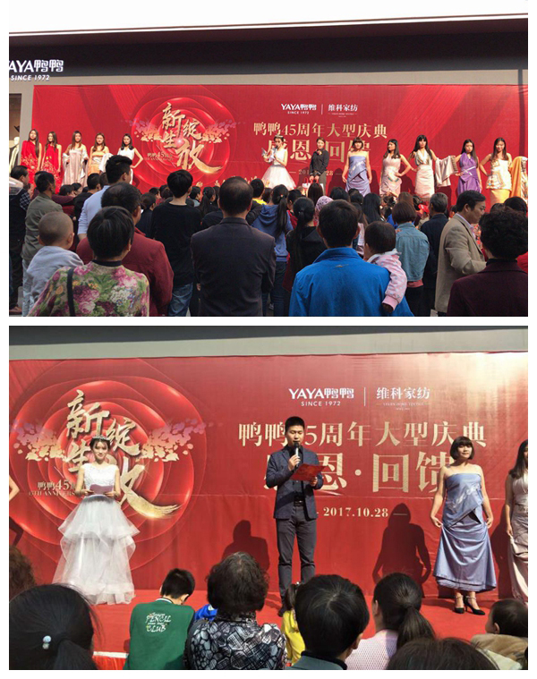 2017年10月28日,維科集團(tuán)旗下全國首家集合店在江西共青城市盛大開業(yè)。開業(yè)慶典活動人氣爆棚,活動進(jìn)行兩天銷售突破10萬元。28日早上以歡快的鑼鼓聲開場,吸引了店鋪周邊的共青市民駐足。維科家紡用床單和被套做裹布秀出場,模特優(yōu)雅的步伐,配合主持人對每款產(chǎn)品FAB的介紹,讓廣大消費(fèi)者對維科家紡歐了全新的認(rèn)識。隨后呀呀實(shí)體店管理公司南大區(qū)經(jīng)理李海泉發(fā)表開業(yè)致辭。事業(yè)部副總經(jīng)理?xiàng)钴S輝、維科家紡總經(jīng)理王吉鋒、鴨鴨股份公司總經(jīng)理徐相圣等領(lǐng)導(dǎo)進(jìn)行開業(yè)剪彩,并陪同當(dāng)?shù)卣嘘P(guān)領(lǐng)導(dǎo)到敬老院進(jìn)行了愛心捐贈,相關(guān)媒體全程跟蹤采訪報(bào)道。此次開業(yè)慶典活動,不僅提升了鴨鴨品牌的美譽(yù)度,更擴(kuò)大了維科家紡在當(dāng)?shù)氐闹取?/span>